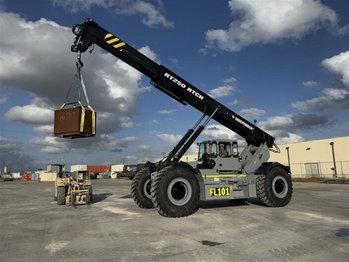 Equipped with a robust Cummins diesel engine, along with 2-Wheel and 4-Wheel Drive, 2-Wheel, 4-Wheel and Crab Steering, plus a remarkable 32.6’ turning radius and capable of navigating 27% inclines while fully loaded, the RT250 operates in extreme rough terrain and confined spaces with effortless agility.